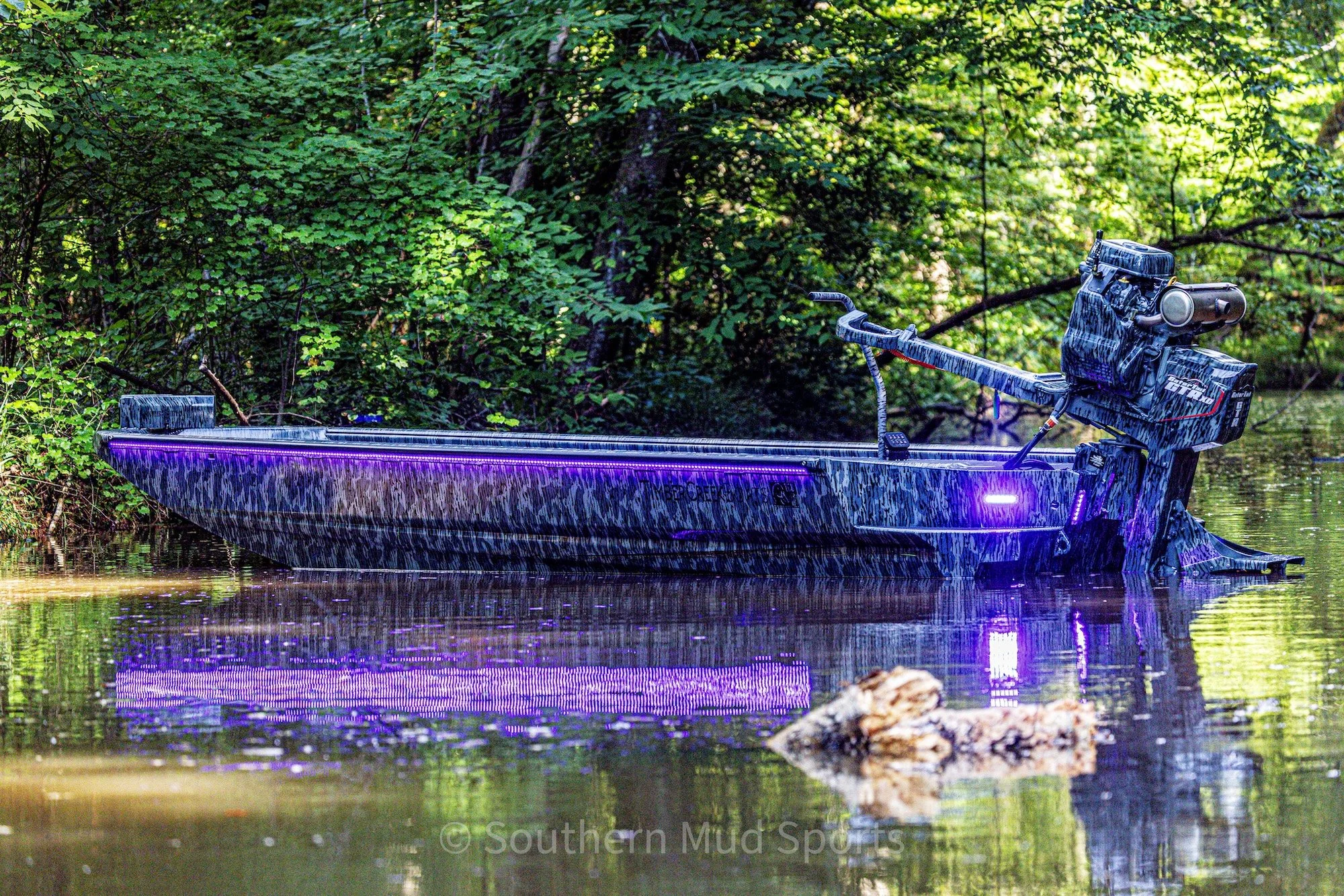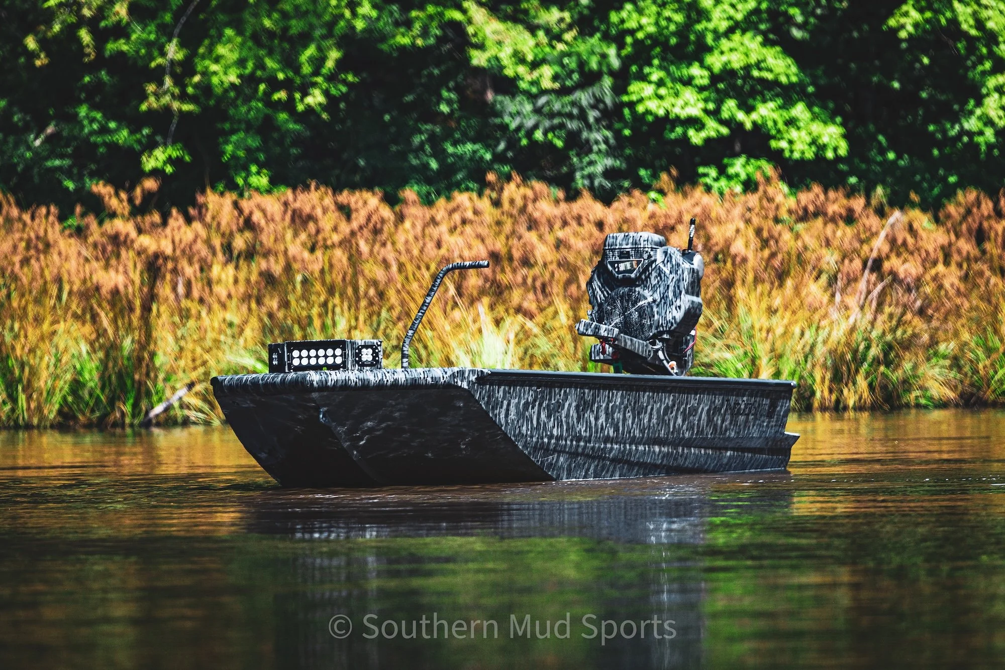 Bringing a legend to a Southern Mud Sports near you. Building boats at a production level with the standard Timber Creek is known for. We have all outboards available, and only use Gator Tail for our mud motors. Select your camo, seadek, stock/turbo/build, JL stereo and Southern Light LED package to stand out anywhere in North America. Let’s get started and join the Timber Creek family with perfection, experience and class. We make a top shelf hunting and fishing machine. Simple design builds we talk you through every step. We customize your boat the way you want it designed. Once completed, we photo your build get it approved and then you are ready for pick up at a Southern Mud Sports near you. Also, we offer shrink wrap and can have it delivered to your door step.