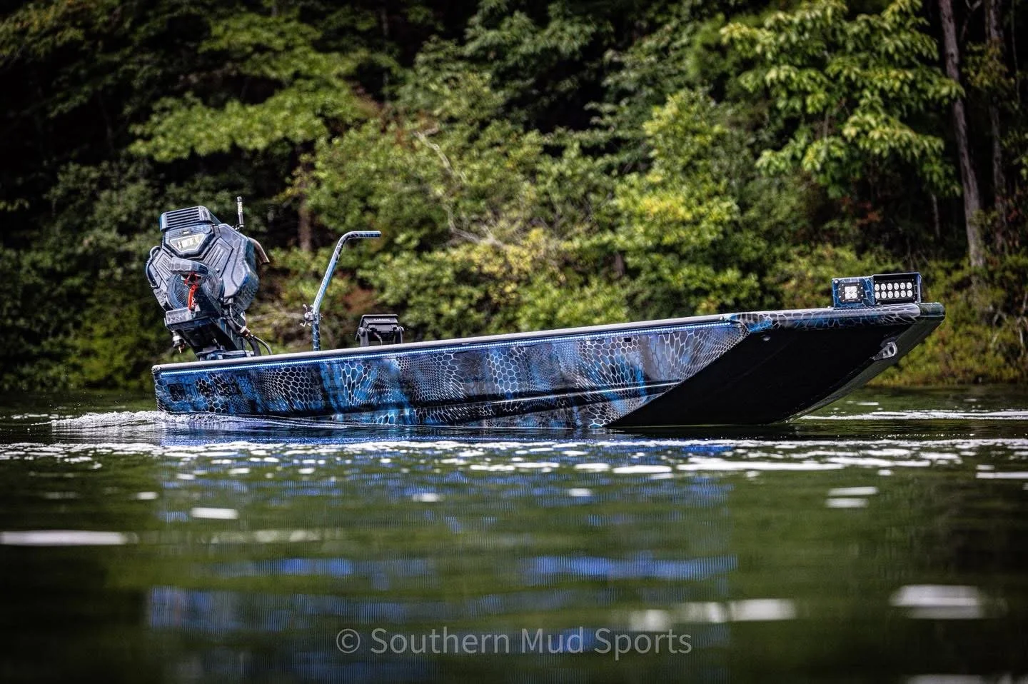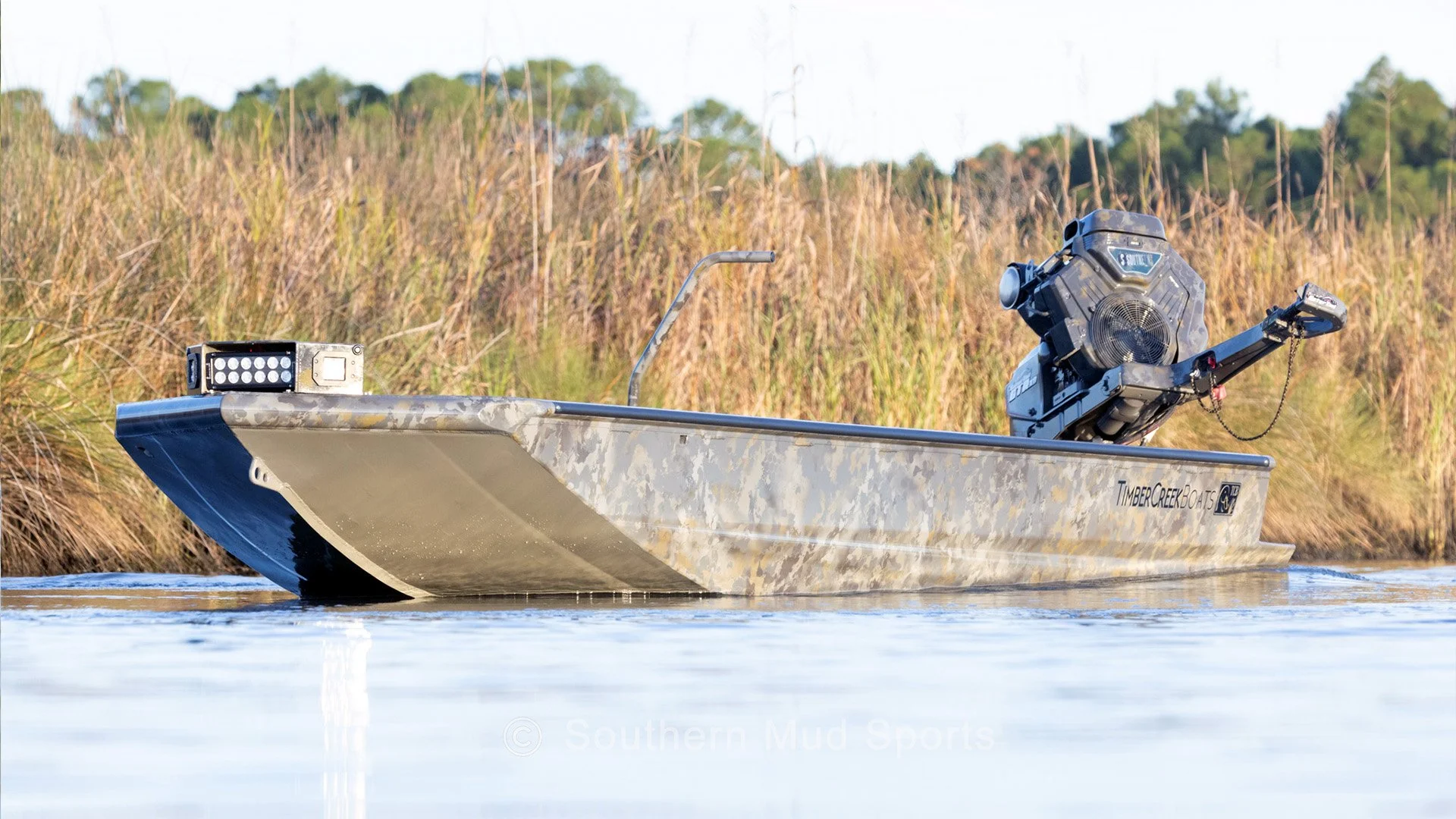 Bringing a legend to a Southern Mud Sports near you. Building boats at a production level with the standard Timber Creek is known for. We have all outboards available, and only use Gator Tail for our mud motors. Select your camo, seadek, stock/turbo/build, JL stereo and Southern Light LED package to stand out anywhere in North America. Let’s get started and join the Timber Creek family with perfection, experience and class. We make a top shelf hunting and fishing machine. Simple design builds we talk you through every step. We customize your boat the way you want it designed. Once completed, we photo your build get it approved and then you are ready for pick up at a Southern Mud Sports near you. Also, we offer shrink wrap and can have it delivered to your door step.